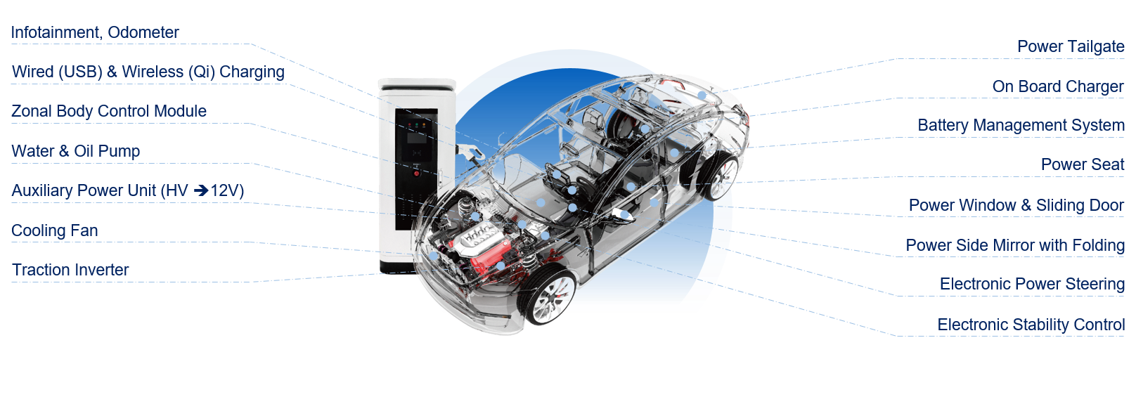 捷捷微電 車規(guī)級產(chǎn)品 (MOSFET, TVS) 可廣泛應(yīng)用在汽車助力轉(zhuǎn)向,油泵,水泵,以及電動(dòng)車窗,尾門,座椅,天窗等。 車規(guī)級 MOSFET 產(chǎn)品在盡量降低導(dǎo)通內(nèi)阻的同時(shí),能額外降低器件結(jié)電容效應(yīng),減少 Qg,進(jìn)而提供較高的工作效率,減少發(fā)熱,并且提供兼容市面主流應(yīng)用先進(jìn)封裝架構(gòu),如 PDFN5x6-8L, PowerJE?7x8 (sTOLL 兼容), PowerJE?10 x12 (TOLL 兼容) 常用在電機(jī)開關(guān)等應(yīng)用。同時(shí),這些產(chǎn)品經(jīng)過嚴(yán)格 AEC-Q101 Rev-E 測試,具備高可靠性。 車規(guī)級瞬態(tài)抑制二極管 (TVS) 采用捷捷微電自有專利結(jié)構(gòu) DO-218 封裝,用于12V 和 24V 系統(tǒng)中,可通過拋負(fù)載 ISO 16750-2 P5a/5b 測試,脈沖功率達(dá)到 4.6 ~ 8.0kW,具備高度一致性,強(qiáng)耐沖擊性,實(shí)現(xiàn)高可靠性,為汽車電子產(chǎn)品安全保駕護(hù)航。